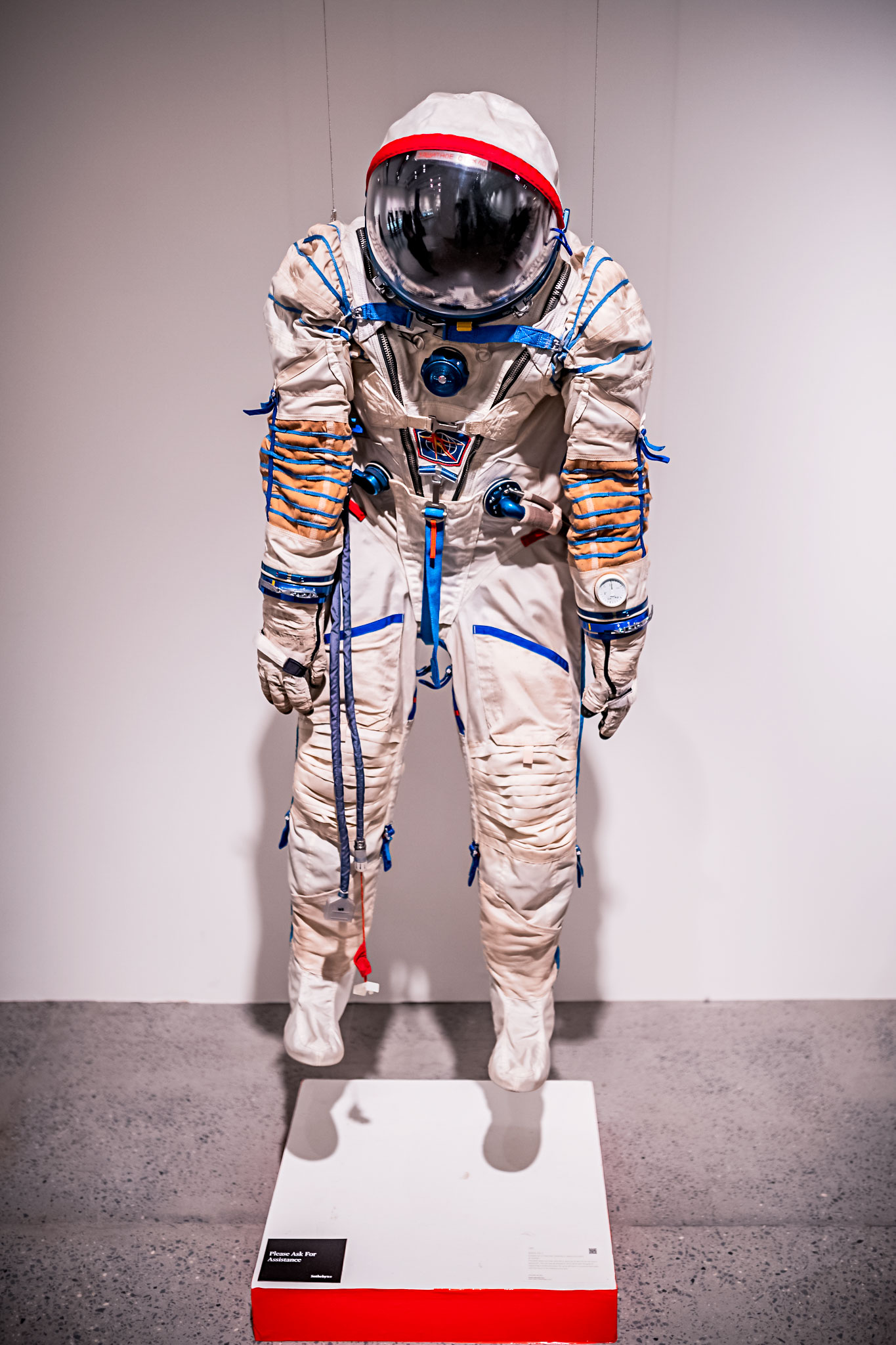 The Space Exploration sale auctioned a wide variety of materials from the Mercury, Gemini and Apollo mission; And offered the perfect collection of inspiration to develop a cohesive two-floor branded exhibition design – I knew I wanted something bold, minimal and bright colors to draw the eye around the large space. With the challenge of a small budget and two separate floors needing a different, yet connected feel, I developed a simple system of alternating the ‘hero’ color, keeping all the vinyl exclusive of text to the ends of the walls (a place most often left blank), and highlighting the key items throughout. For the top lot of the sale – The Luna 16 Moon rocks, I brought in the additional elements of plexi glass and an image vinyl to create a special moment.